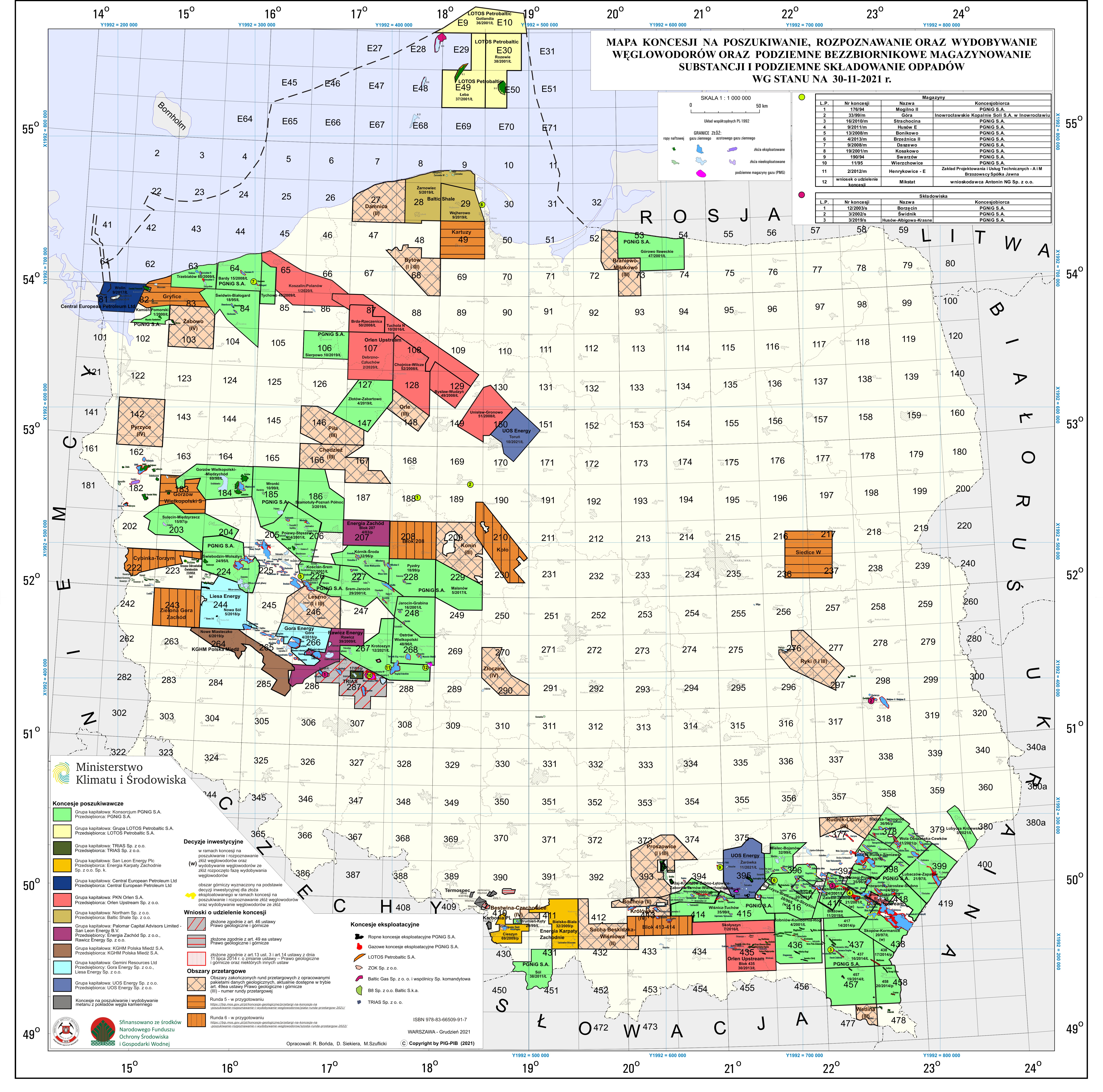 Map of concessions for hydrocarbon exploration and production, and non-reservoir storage of substances in the subsurface and storage of wastes in the subsurfacedata: 2021-12-27, rozmiar: 6 MB