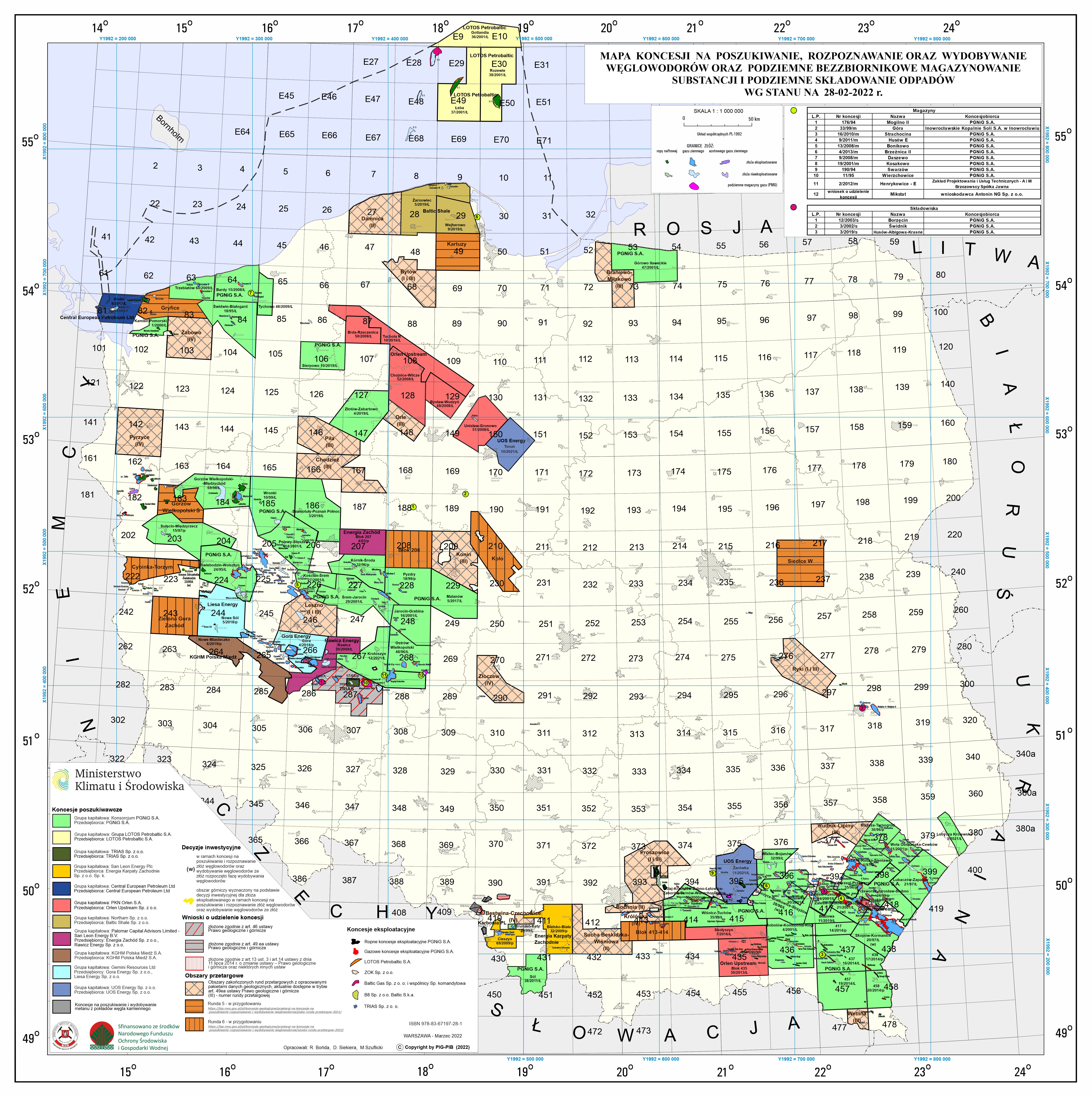Map of concessions for hydrocarbon exploration and production, and non-reservoir storage of substances in the subsurface and storage of wastes in the subsurfacedata: 2022-04-13, rozmiar: 5 MB