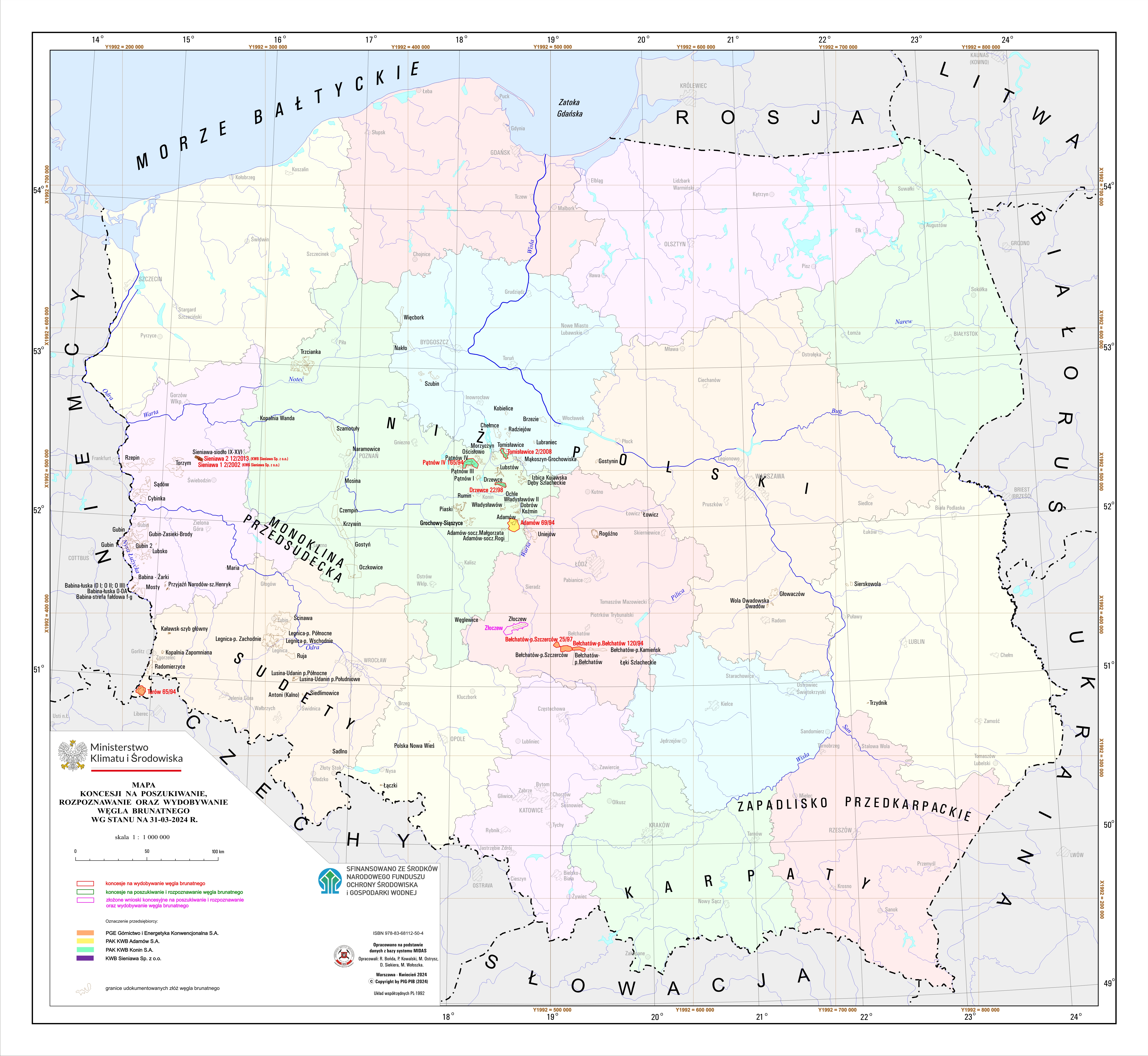 Mapa koncesji na poszukiwanie, rozpoznawanie oraz wydobywanie węgla brunatnegodata: 2024-04-18, rozmiar: 8 MB