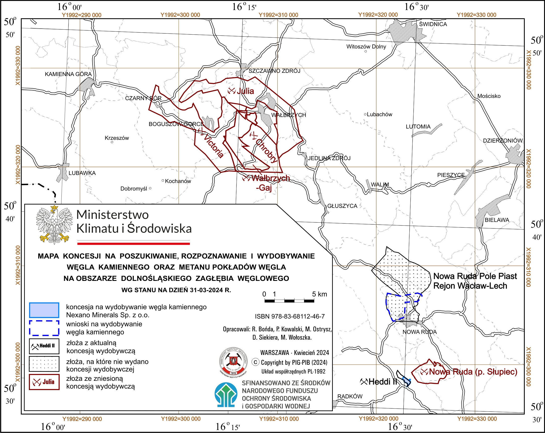 Map of concessions for hard coal and CBM prospecting, exploration and production in the Lower Silesian Coal Basindata: 2024-04-18, rozmiar: 1 MB
