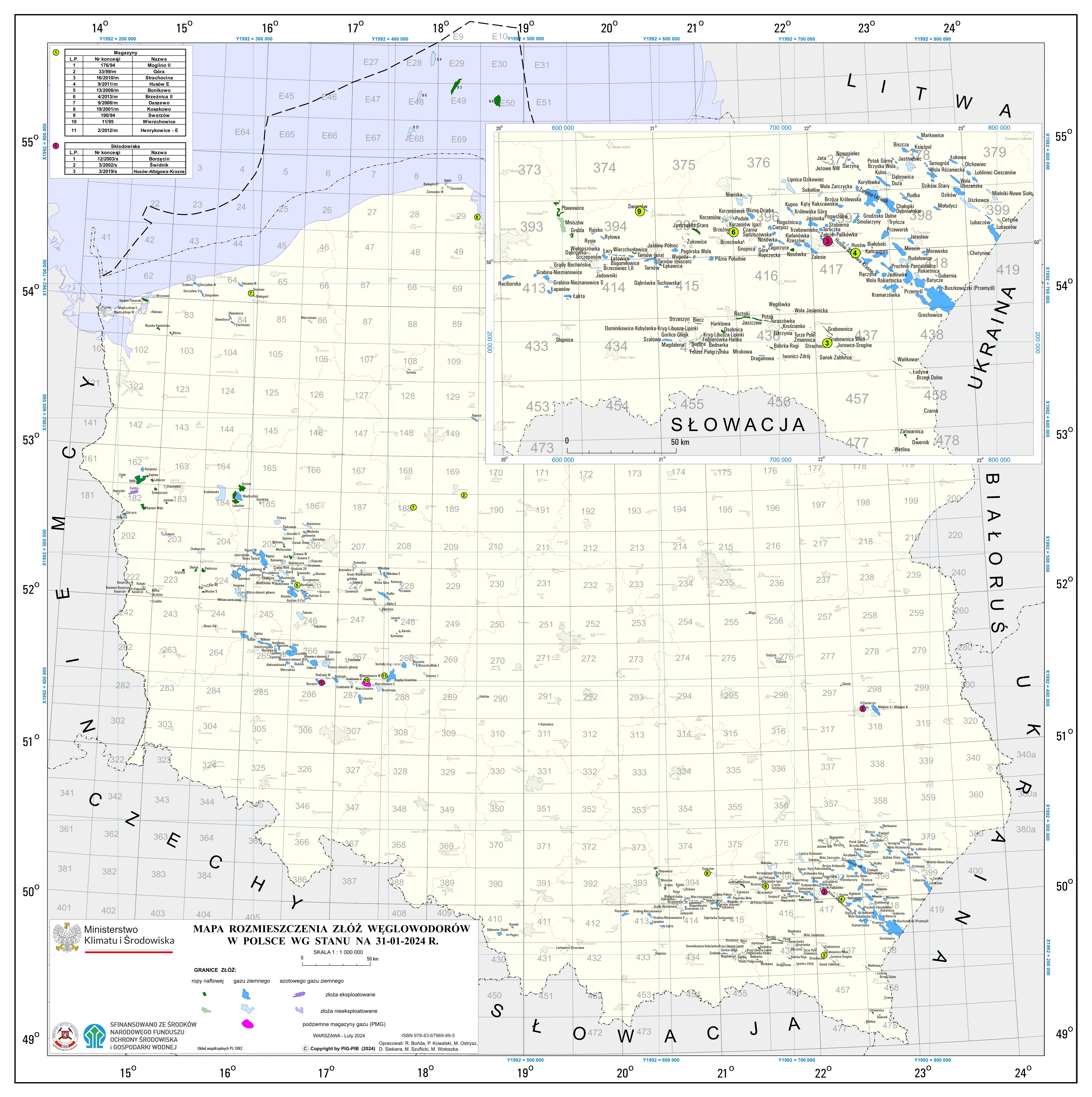 Mapa rozmieszczenia złóż węglowodorów w Polsce wg stanu na 31-01-2024data: 2024-02-21, rozmiar: 9 MB